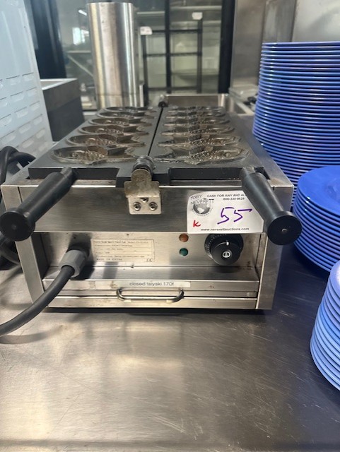 Cedar Line CellarPro Wine Cooler (Holds Approx 300 Bottles), Good Nature Cold Pressure Juicer , Taylor 336-27 Ice Cream Machine, Vevor Ice Cream Machine, Closed Taiyaki Machines, APW Wyatt 36″ Step Up 6 Burner Counter Top, Everest Single Glass Door Cooler, NEW Advantco 47″ Curved Glass Deli Case, Manitowoc 420lb Cuber, 4 Hole 58″ Electric Steam Table with Sneeze Guard, 60qt Mixer, NEW Dough Express, Continental 48″ Under Counter Cooler, Serv-Ware 67” Pizza Prep Table, True Stainless Roll In Cooler, SnoWay Korean Ice Cream Maker, Small Wares & MORE