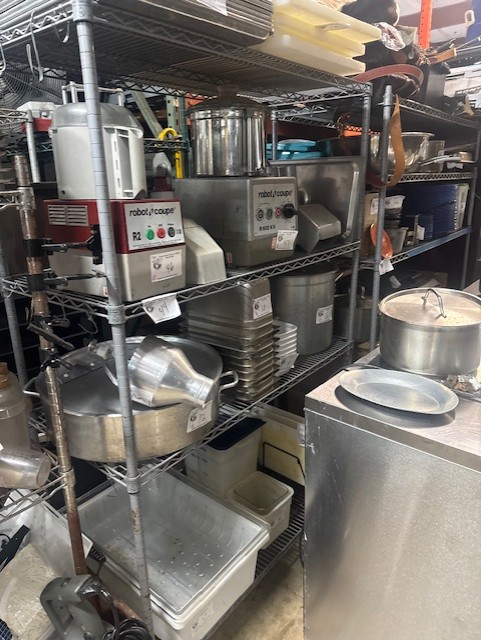 Norlake Stainless 1 Door Cooler, True Stainless 2 Door Cooler, Robo Coupe R2, Robo Coupe R502VV, Imperial 6 Burner Range, Manitowac 600lb Ice Maker, Blodgett HVH100 Hydro Vection Double Stack Convection Oven & a Single Stack, Lunar Ice 300lb Ice Maker, Fry Master & Dean Fryers, Stainless Steel Tables, Continental 27″ Glass Top Sandwich Prep Table , Asber 6 Burner Range, Vollwrath Curved Heated Display Case, Middleby Marshall PS2020 Conveyor Pizza Oven, Small Wares & MORE