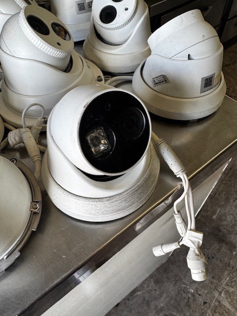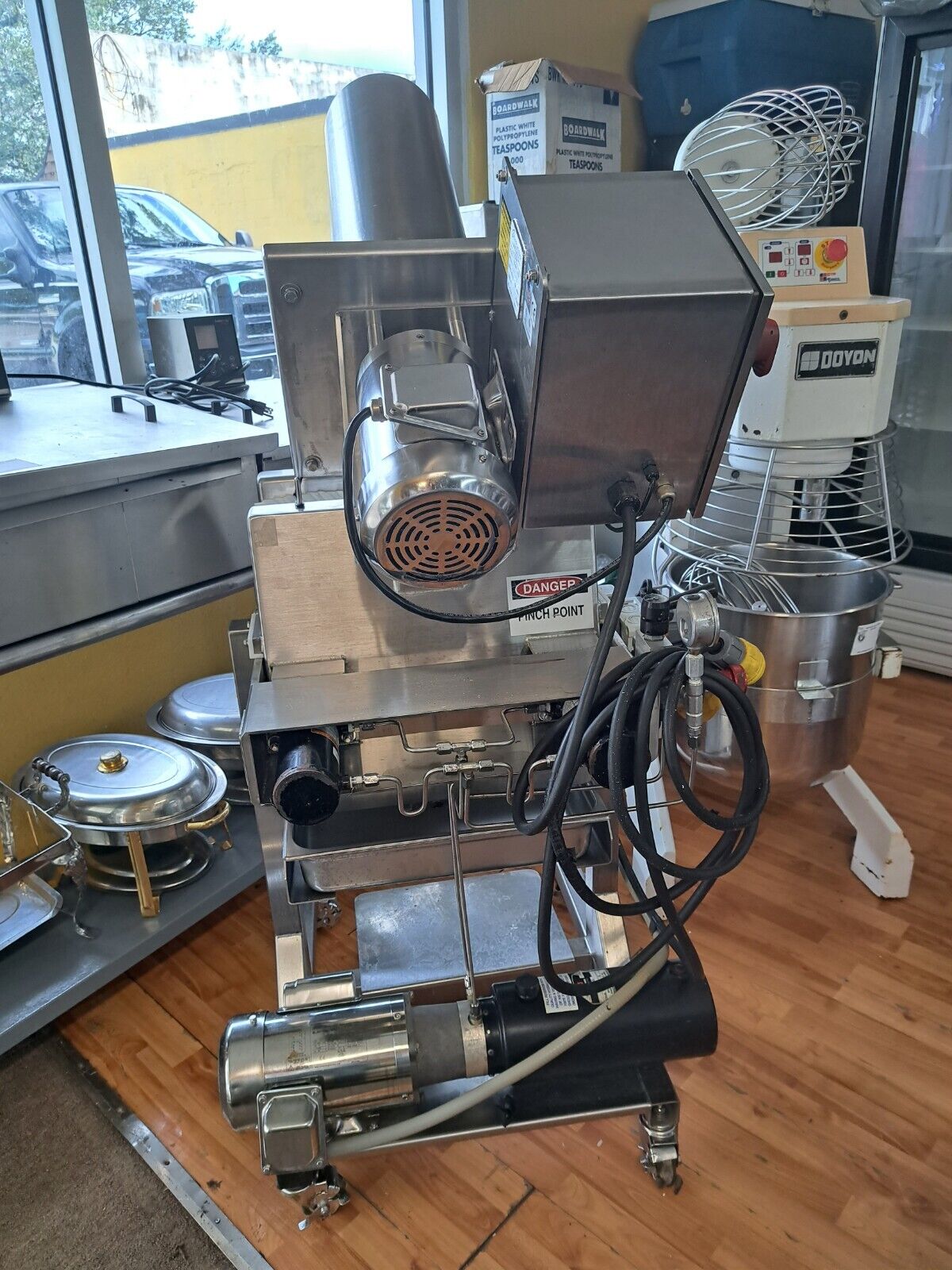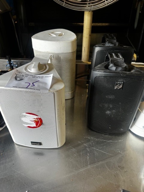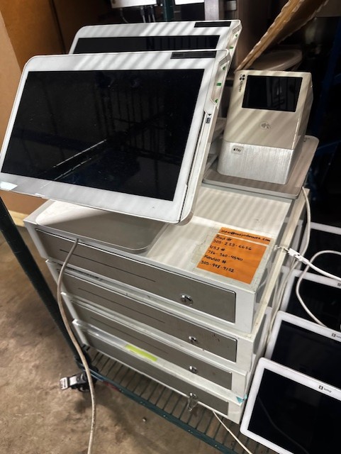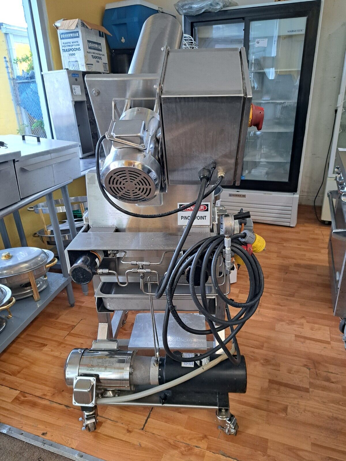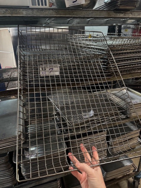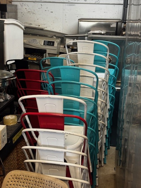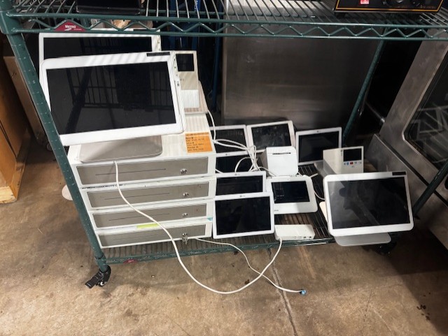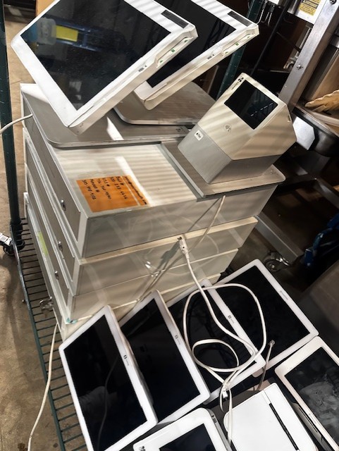 Omcan Counter Top Butterfly Sheeter, (2) Good Nature Juicer, Assorted Stainless Steel Tables, Assorted Dunnage Racks, Kelvinator Glass Slide 2 Door Cooler, Duke Stainless 48″ Counter with Cup Holders & Cappuccino Tank, Security Cameras, Sheet Pans & Racks,
