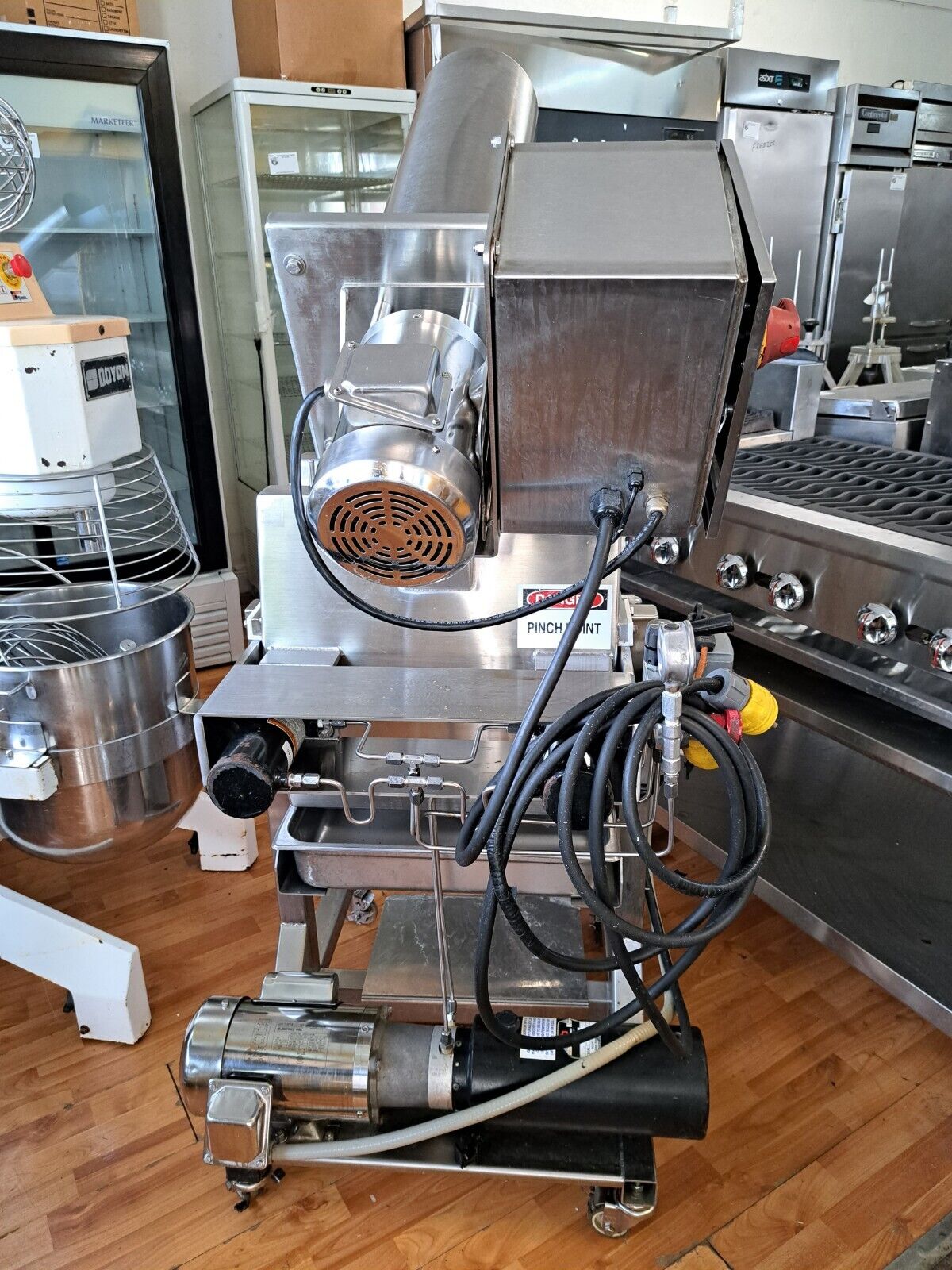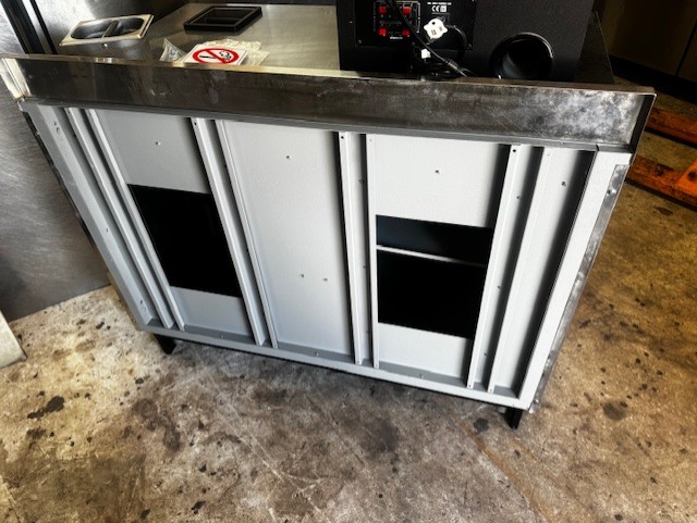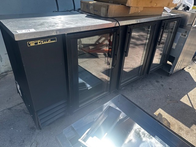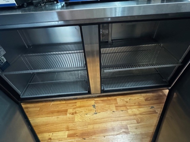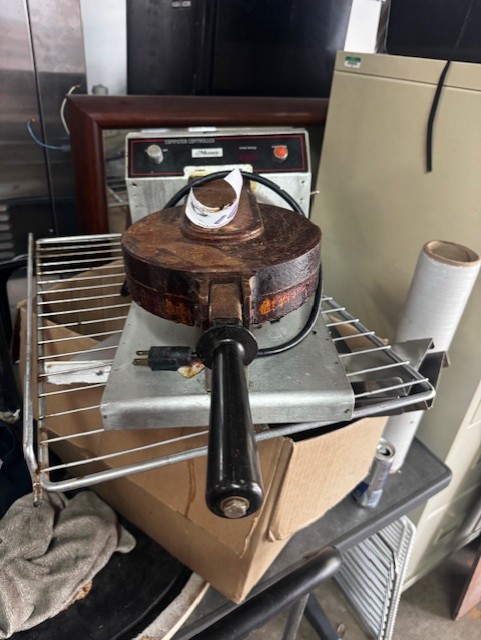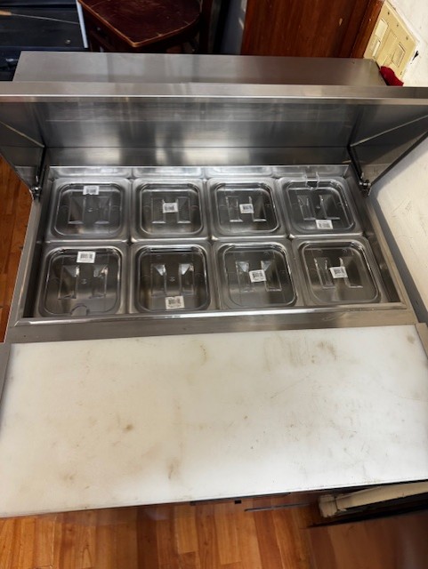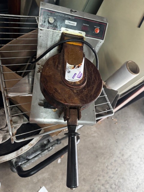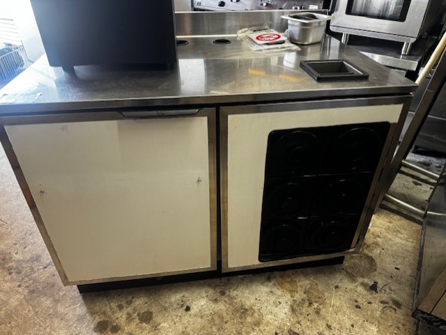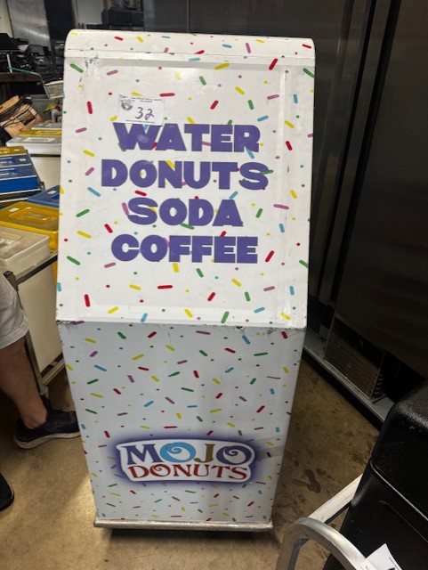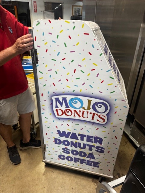 True 60” Under Counter Cooler, Migali 27” Sandwich Prep Table, Hobart Buffalo Chopper, Marc 48” Curved Glass Dry Case, Fryers, Belshaw Gas Donut Fryer, Tables & Chairs, Small Wares